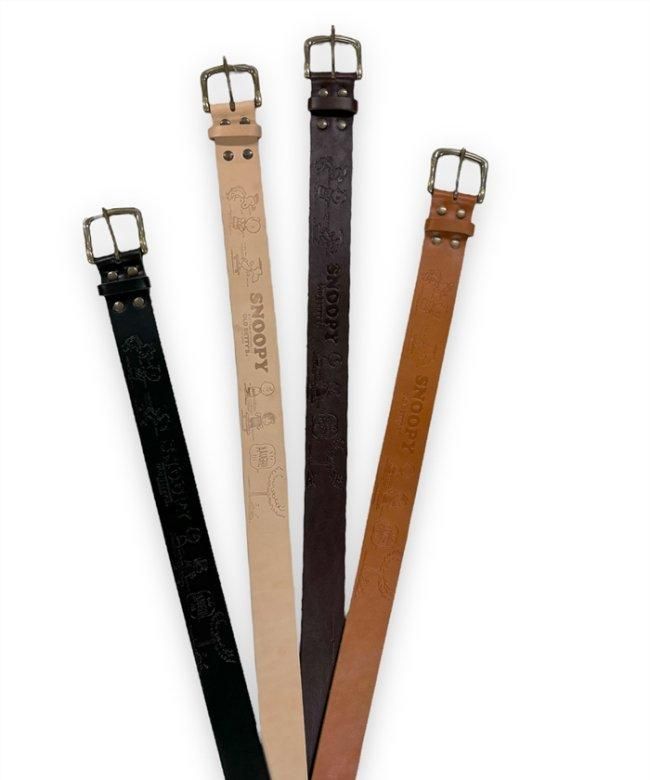 厚みのあるしっかりとした牛革にSNOOPYのヴィンテージコミックが型押しされた、Made in Japanのオリジナルレザーベルトです。 ゆったりサイズ対応なのでユニセックスでも使える仕様。 プレゼントにも喜ばれるアイテムです。