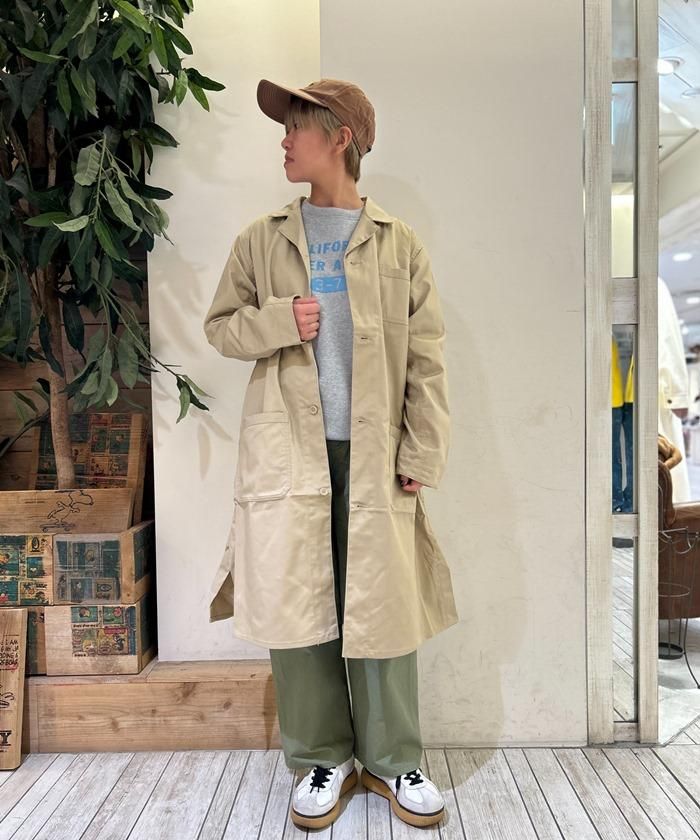 丈夫な微光沢のツイル生地を使用。元々はファクトリーエンジニアが、作業着の上に羽織りカスタマー対応を行う為のコートが起源といわれているエンジニアコート。そのため、シャツやタイにもマッチするように想定した綺麗なテーラー衿、スルーポケット仕様となっているためコートの上からでもインナージャケットやパンツのポケットに出し入れができる機能美があります。そして、ペン差し付きポケットなど細部にこだわったディティール。またサイドベンツを採用しているため動きやすい仕様がポイント。