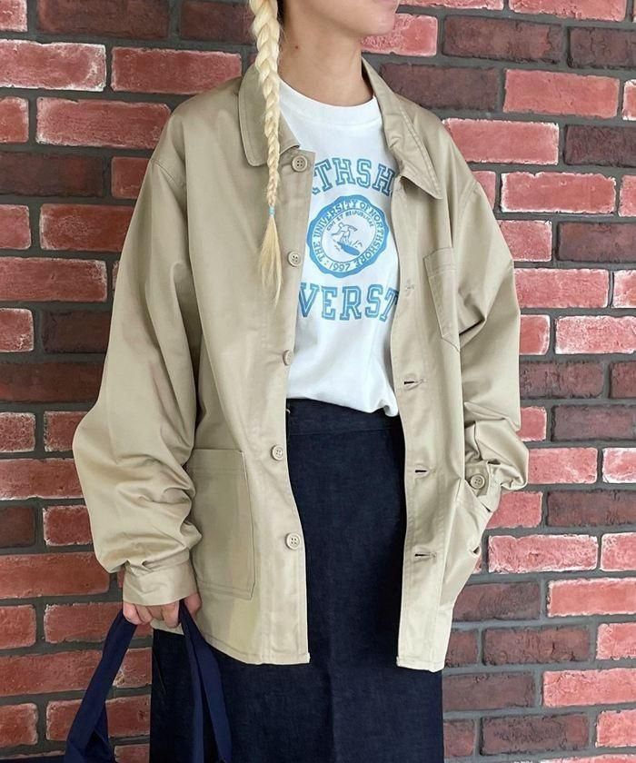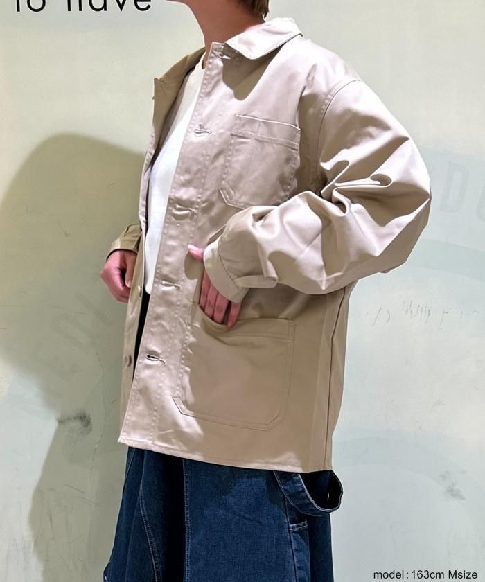 丈夫な微光沢のツイル生地を使用。珍しいフレンチカバーオールを現代風にアレンジした本品番。肩線の接ぎ目を少し後ろに倒し、生地目をバイヤスでとることで、着用時にも腕が動かしやすい仕様となっています。 また、カフスボタンは袖の内側に付く仕様となっているため、引っかけてしまうこともない、安全な作りのダーツ入りカフス。シーンによって腕まくりも可能なのがうれしい、クラフトマンシップとデザイン性を融合させた一着。