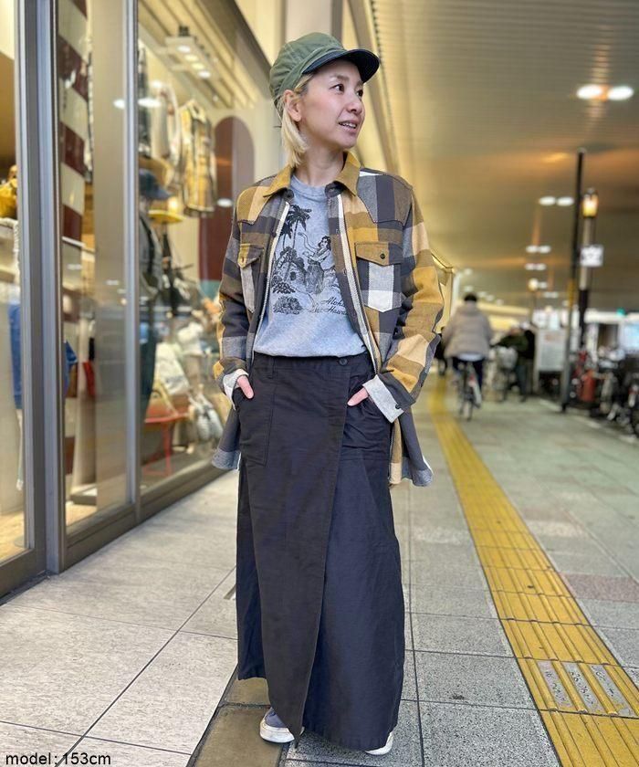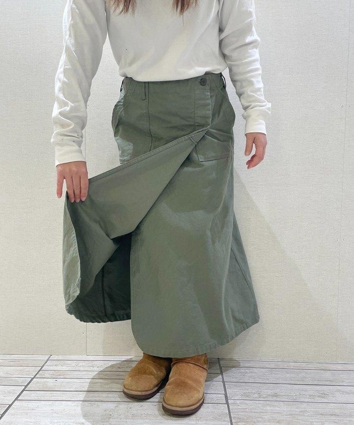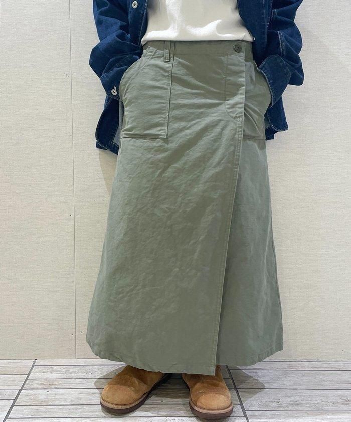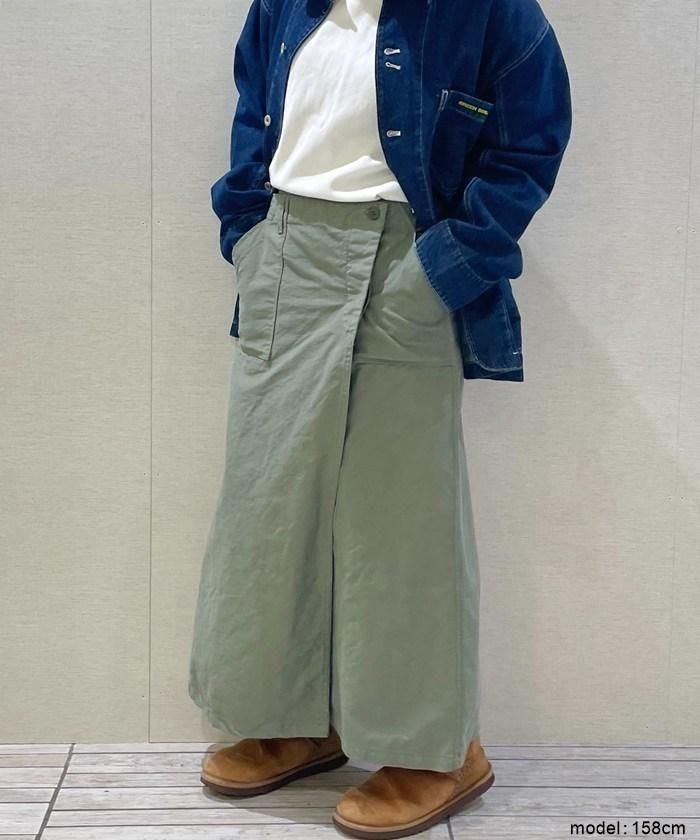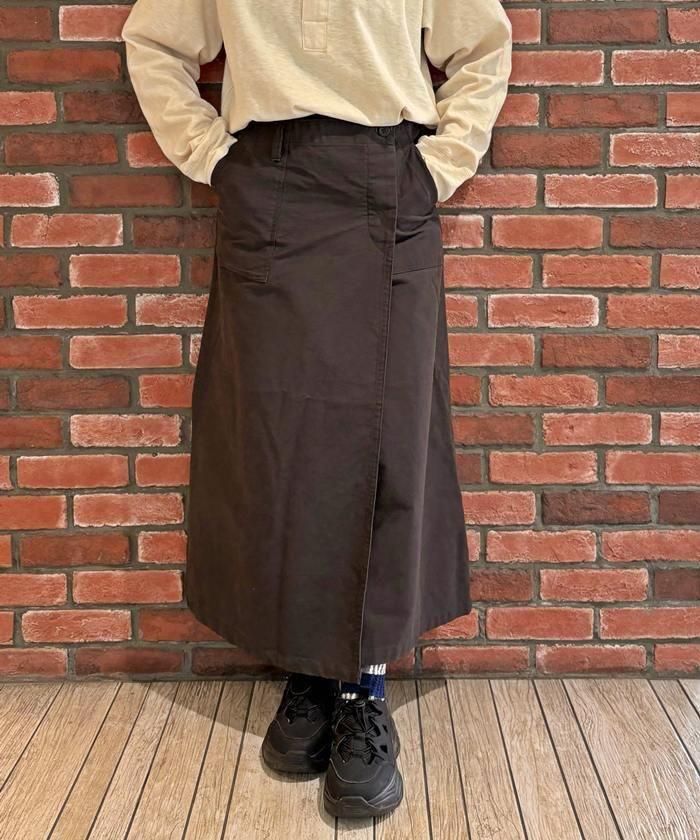 しっかりした生地感のコットンバックサテンを使用したラップスカート。