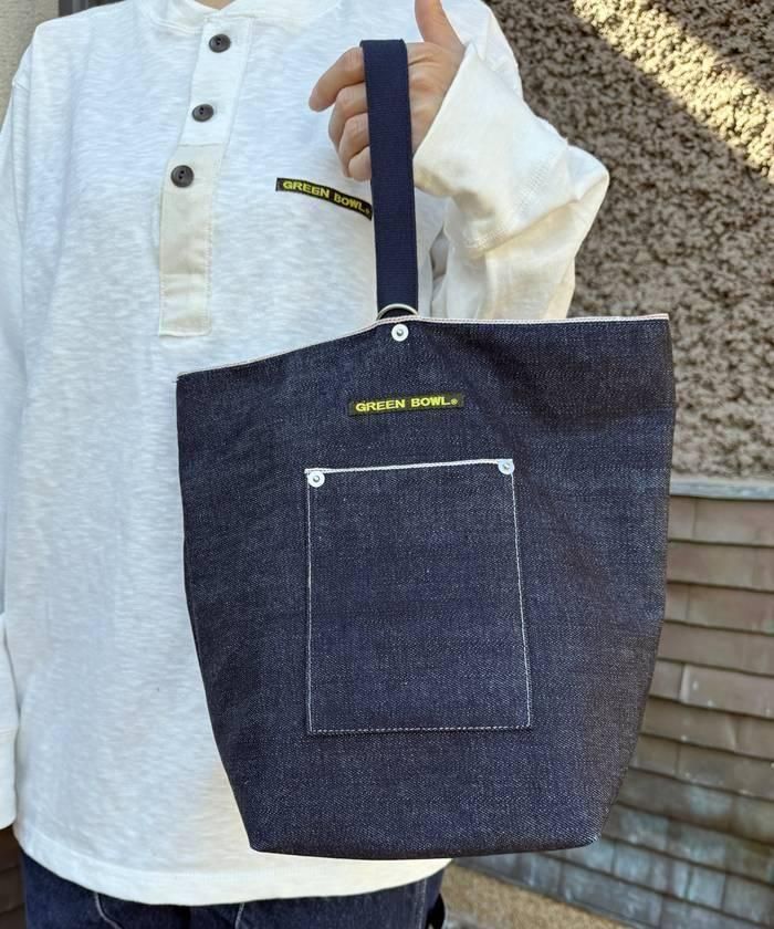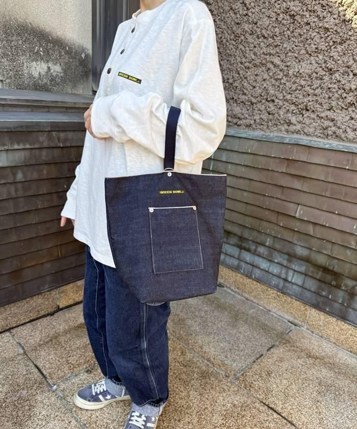 重たいものを入れても安心感のある丈夫なデニム地で、使い込むほどにエイジングをお楽しみ頂けます。 エコバッグとしてはもちろん、アウトドアやスポーツシーンなど、ハードな使用にも最適です。