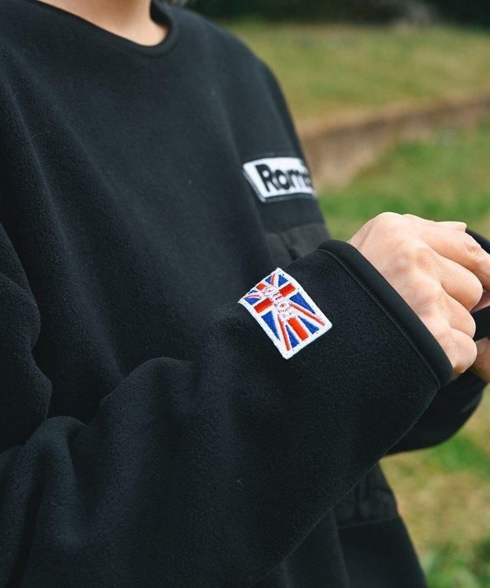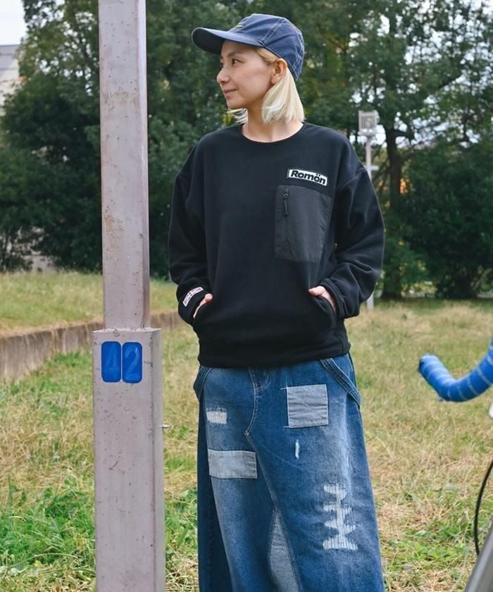 ナイロン素材のポケットや、左胸と右袖口に施したワッペンがアクセントになっています。