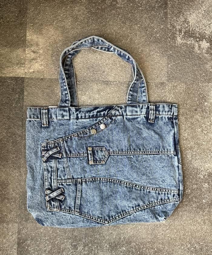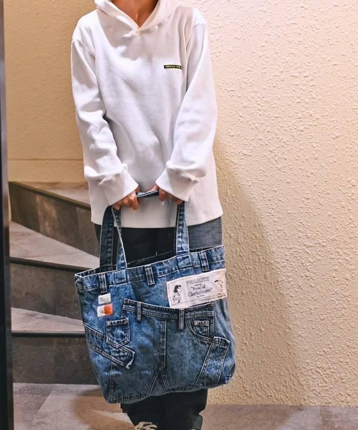 特殊な洗い加工を施す事で、ヴィンテージ風の外観に仕上がっています。利便性の良い内ポケット付きで、デニムパンツをリメイクした様なデザインがポイントです。