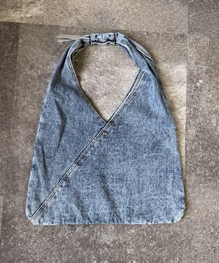 特殊な洗い加工を施す事で、ヴィンテージ風の外観に仕上がっています。バッグロのマグネットで開閉できます。 デニムパンツをリメイクした様なデザインがポイントです。